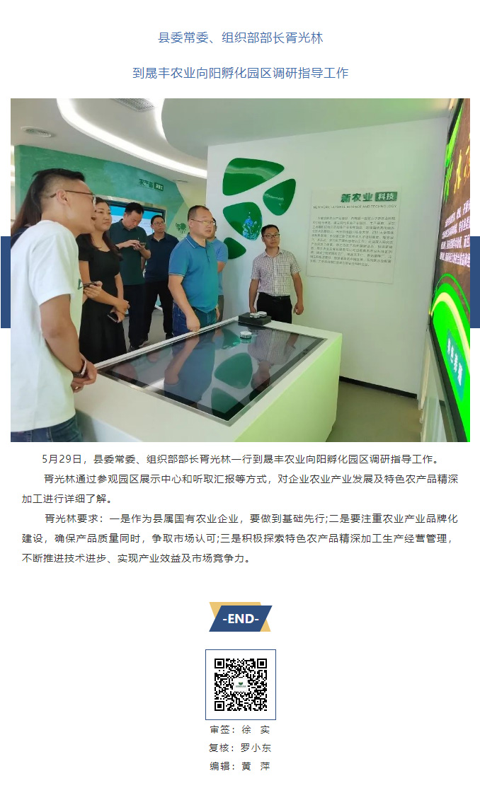 县委常委、组织部部长胥光林一行到j9国际站官网入口农业向阳孵化园区调研指导工作