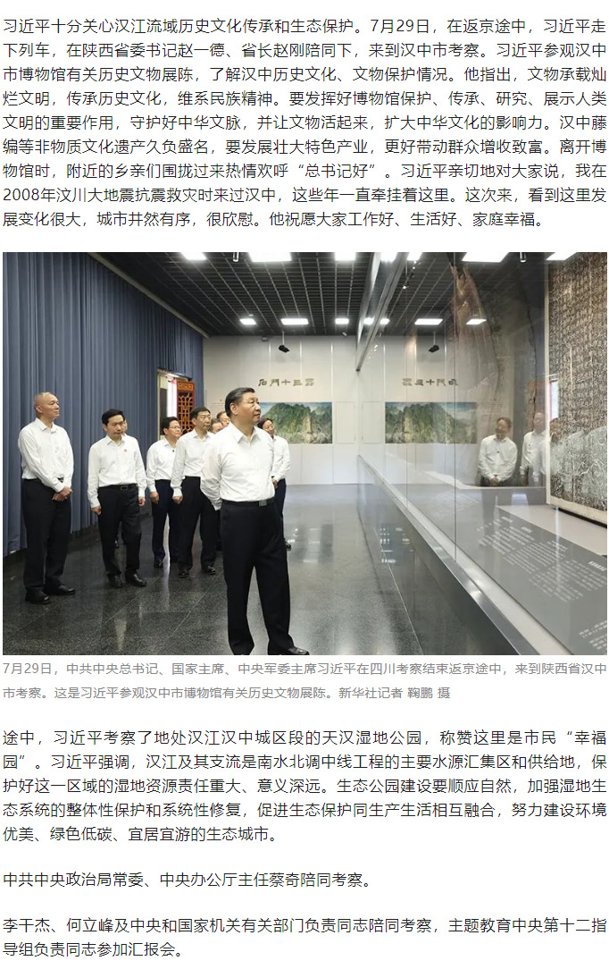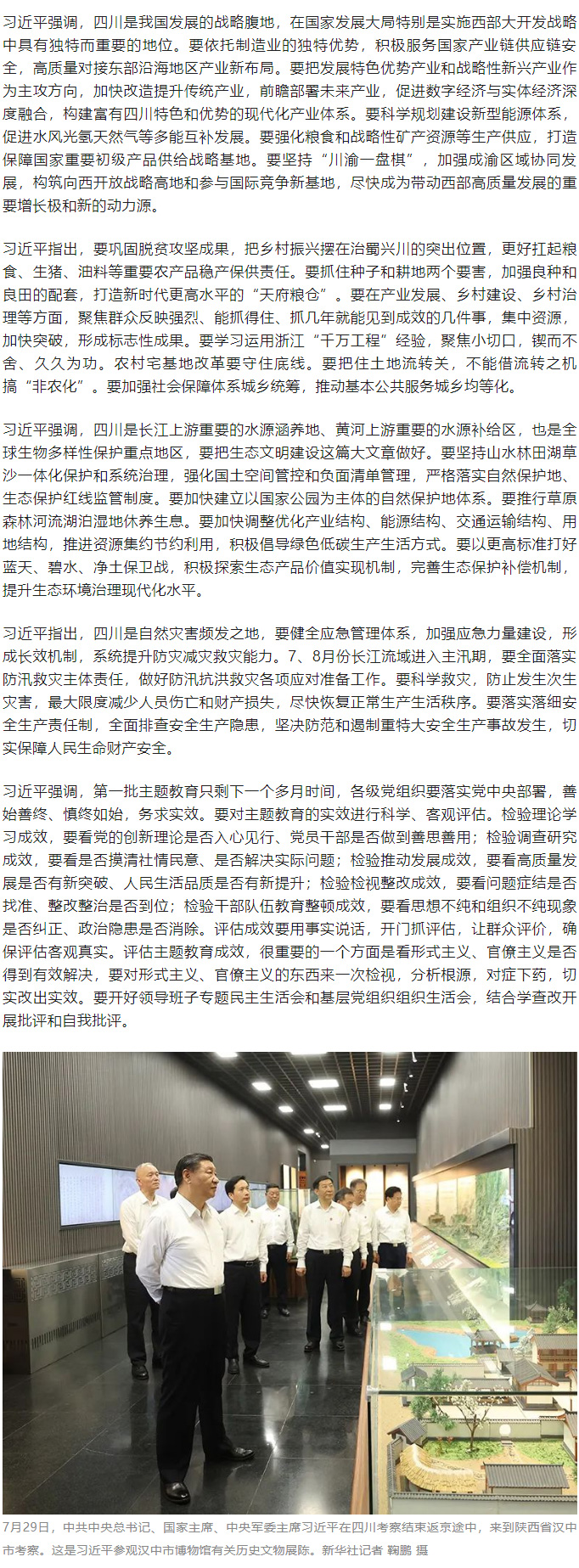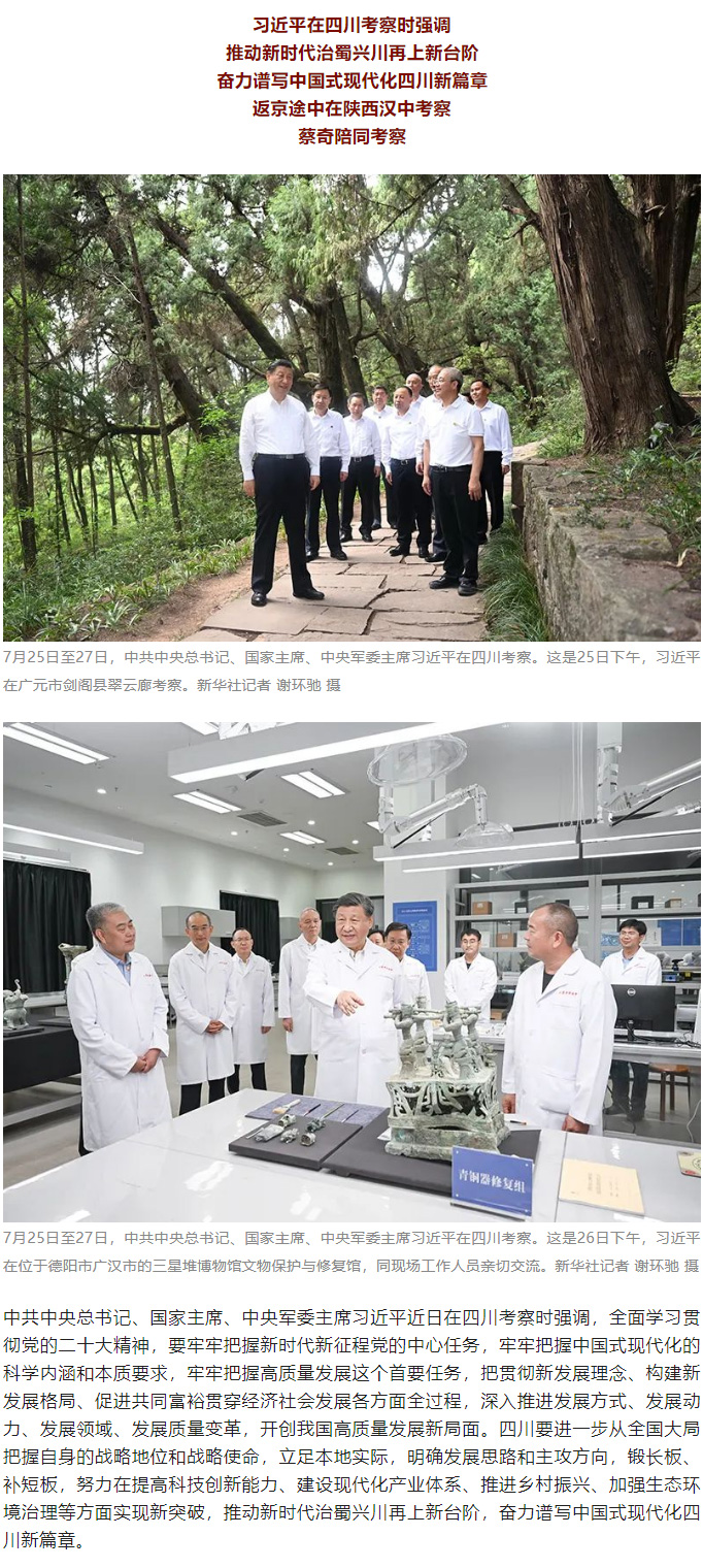 习近平在四川考察时强调 推动新时代治蜀兴川再上新台阶 奋力谱写中国式现代化四川新篇章 返京途中在陕西汉中考察