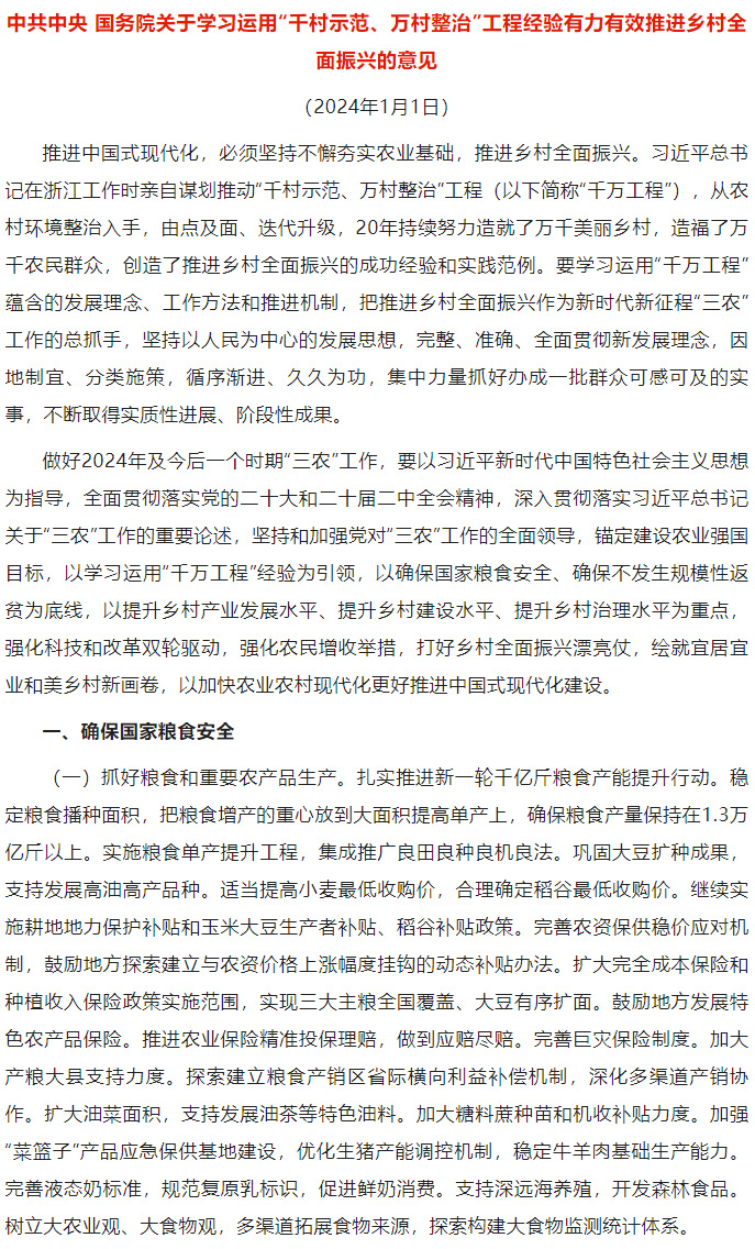 全文|2024年中央一号文件