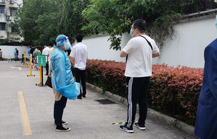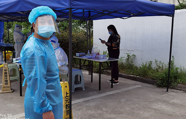 面对疫情防控,j9国际站官网入口党支部志愿者以积极负责的态度,和其他抗疫志愿者通力合作,正确快速的引导和身份核验,协助核酸检测医护人员,保障核酸检测采样工作高效、有序进行。