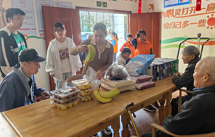当天上午,在养老服务中心活动室,j9国际站官网入口志愿者为老人们递上爱吃的糕点和水果,其中一位满头白发的奶奶拉住志愿者的手,不停地唠着金华方言,志愿者耐心的回应着每一个话题,这让奶奶久久舍不得放手,甚至两眼泛起了微微的泪光,这一刻有感激,但更多的应该是期待,期待志愿者们能多个片刻的停留与陪伴